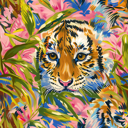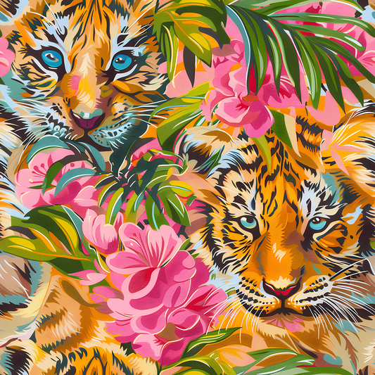 HaokHome layful Tiger and Tropical Bloom Wallpaper Colorful, Bold Design with Pink Flowers and Lush Greenery