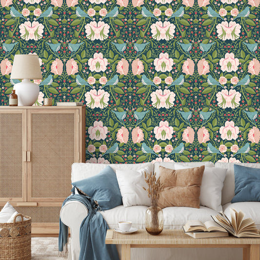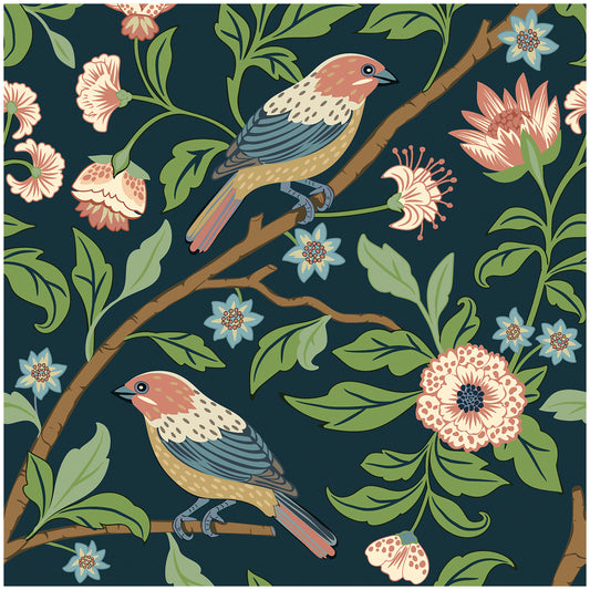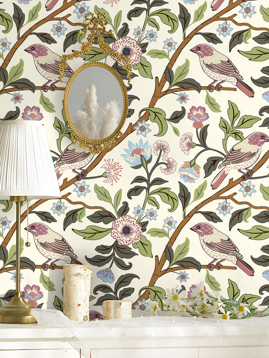 HaokHome Vintage Bird and Floral Wallpaper Elegant Brown Background with Birds and Delicate Blooms HaokHome Vintage Bird and Floral Wallpaper Elegant Brown Background with Birds and Delicate Blooms