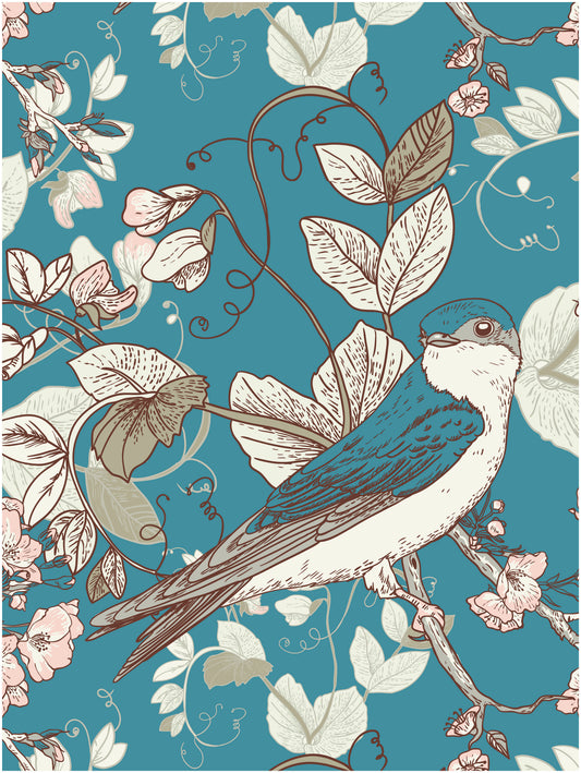 HaokHome Vintage Bird and Floral Wallpaper Elegant Teal Background with Birds, Flowers, and Berries HaokHome Vintage Bird and Floral Wallpaper Elegant Teal Background with Birds, Flowers, and Berries