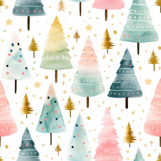 HaokHome Wallpaper Peel and Stick Watercolor Christmas Trees Multicolor Wall Decor Removable Mural for Kids’ Room & Nursery