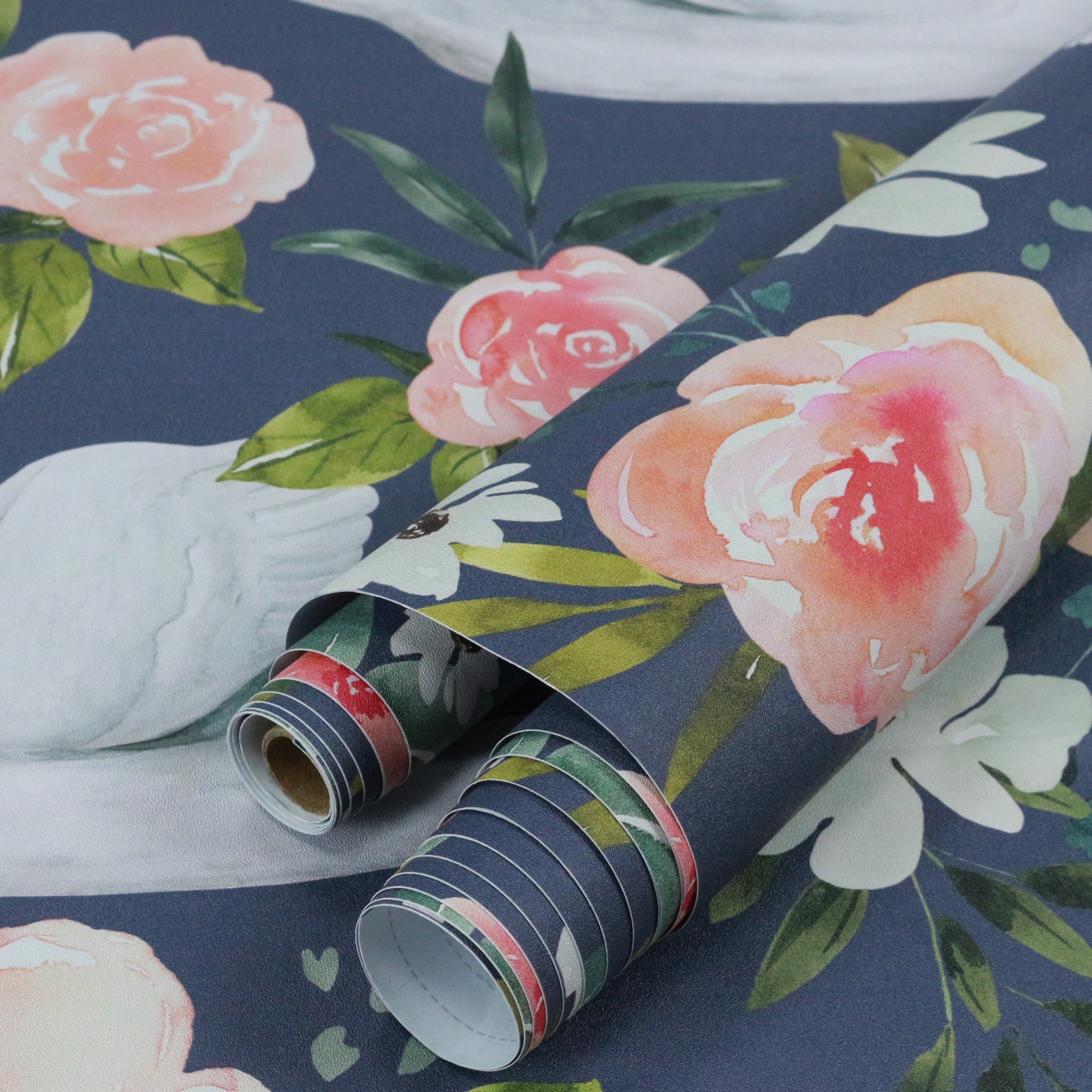 HaokHome Wallpaper Peel and Stick Swan Floral Pink/White/Green Retro Wall Decor Bedroom Removable Mural