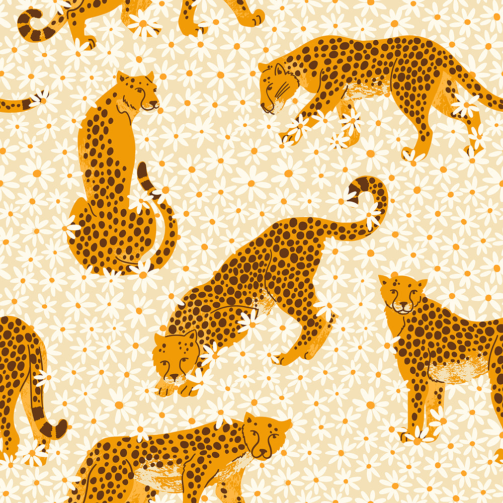 HaokHome Leopard and Flower Wallpaper – Hand-Drawn Cheetahs with Daisies on Beige Background for Modern Living Spaces