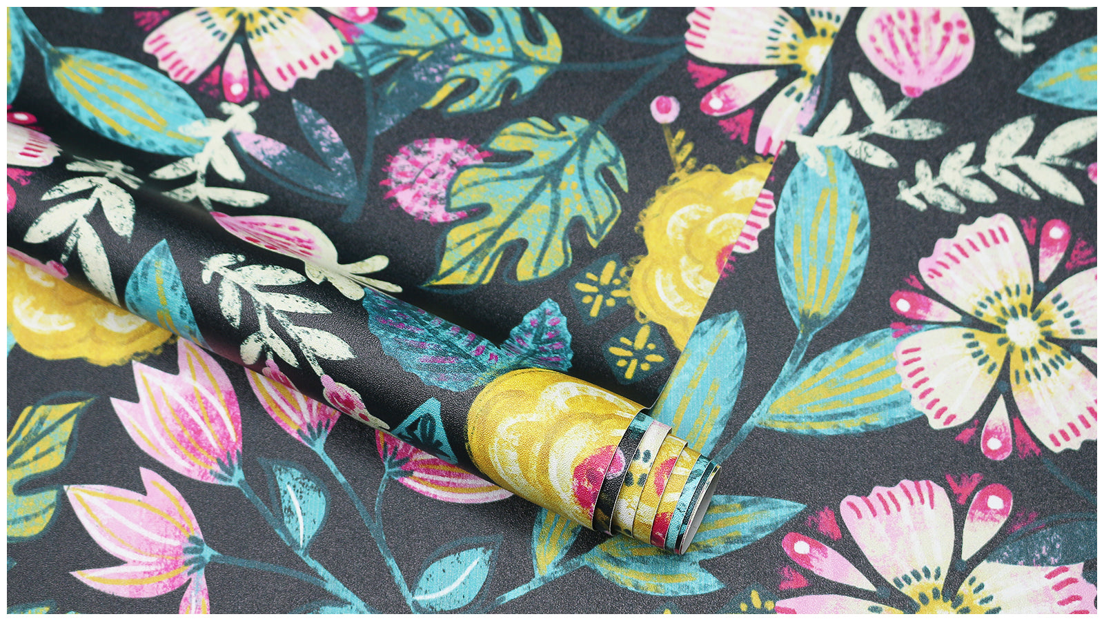 Peel and Stick Wallpaper Vintage Peony Stick on Wall Paper Self Adhesive Mural for Home Decoration Black/Orange
