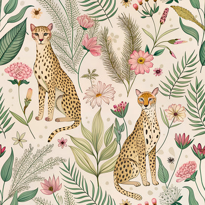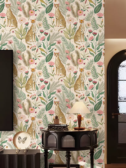 HaokHome Botanical Cheetah Wallpaper - Peel and Stick Removable Decor for Kids’ Rooms & Living Spaces
