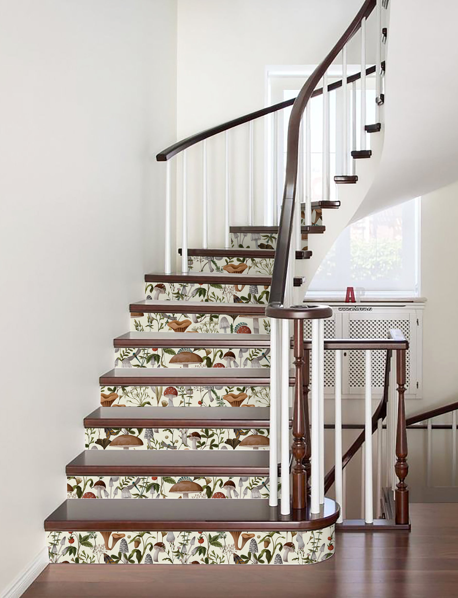 HaokHome Boho Beige Mushroom Peel and Stick Wallpaper Forest Removable Stick on Contact Paper for Kitchen Bathroom