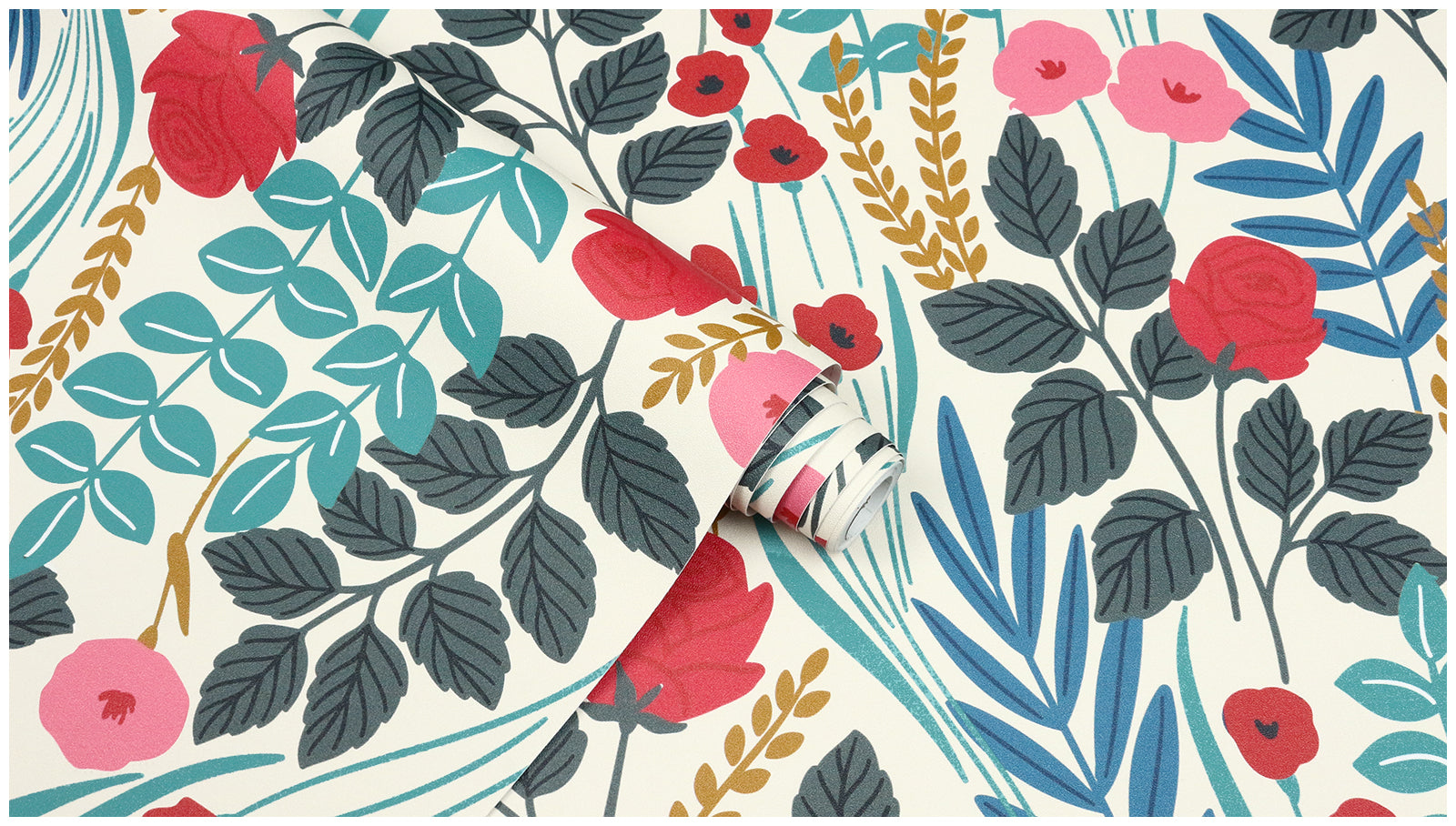 HaokHome Wallpaper Peel and Stick Floral Botanical Design Bright Modern Wall Decor for Living Room, Bedroom, or Nursery