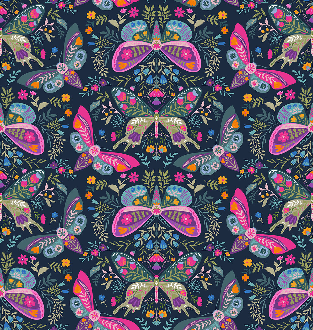 HaokHome Peel and Stick Boho Butterfly Floral Wallpaper – Dark Blue Removable Wall Mural for Kids Room, Bedroom, or Accent Walls