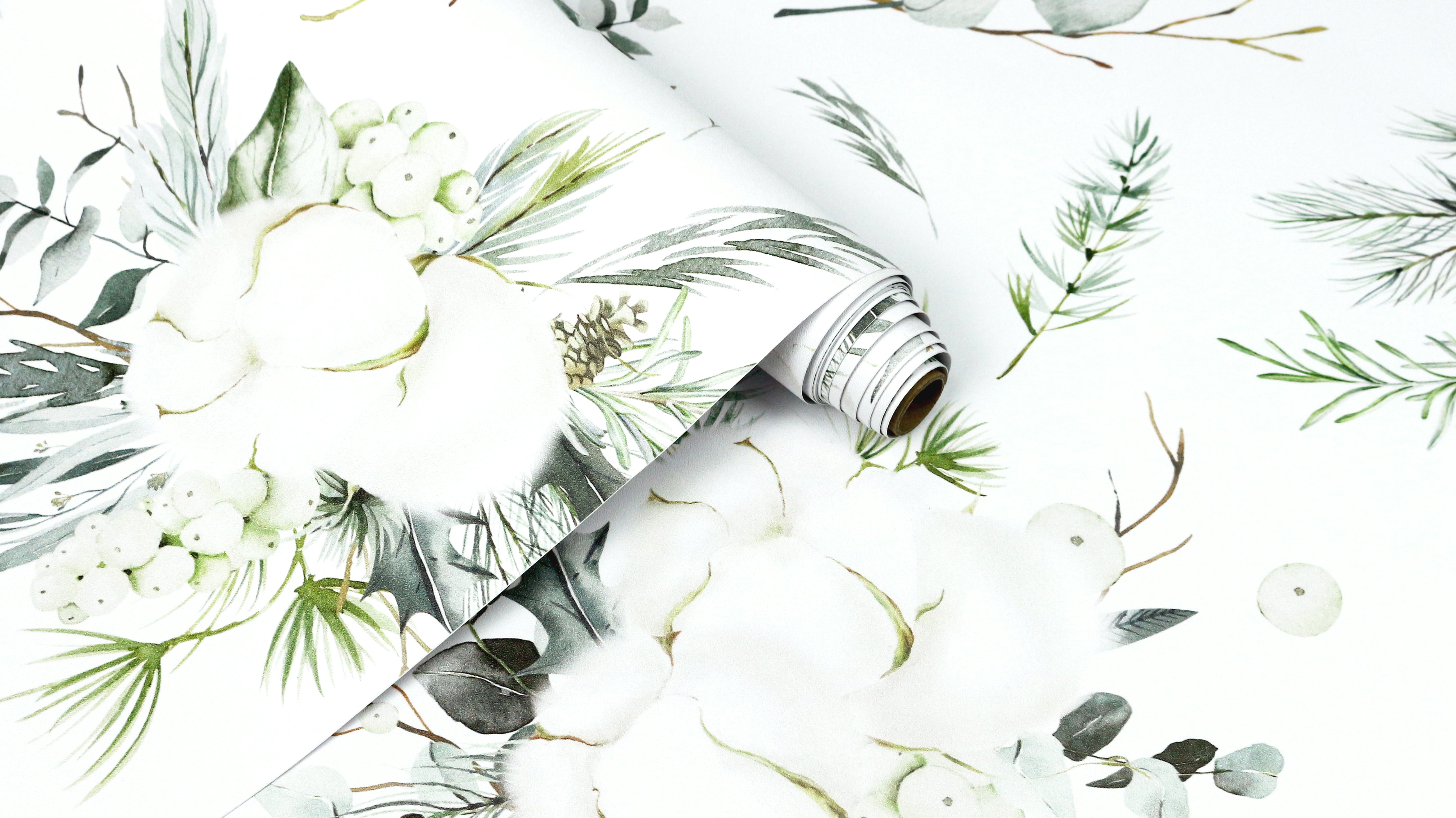 HaokHome Boho Wallpaper Peel and Stick Green White Cotton Flower Waterproof Wall Paper