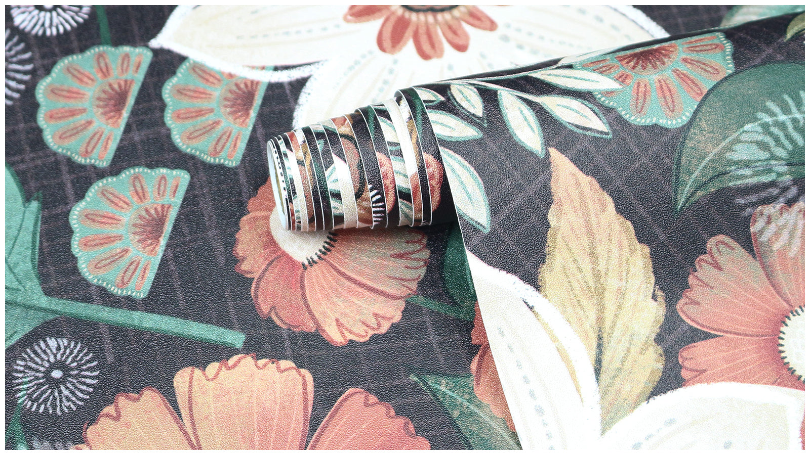 HaokHome Wallpaper Peel and Stick Floral Botanical Dark Brown/Beige/Green Retro Wall Decor Removable Mural for Bedroom & Living Room