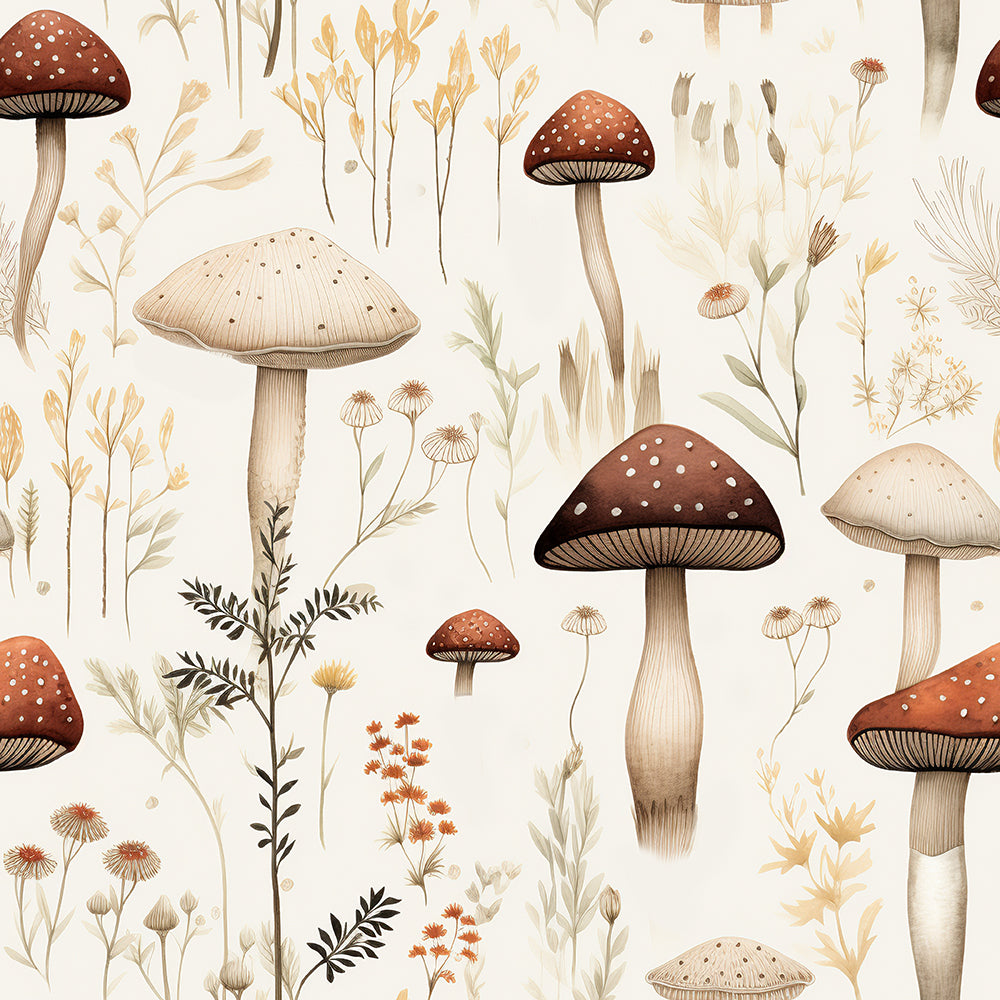 HaokHome Wallpaper Peel and Stick Mushroom and Plant Watercolor Wall Decor in Brown, Yellow & Green Removable Mural