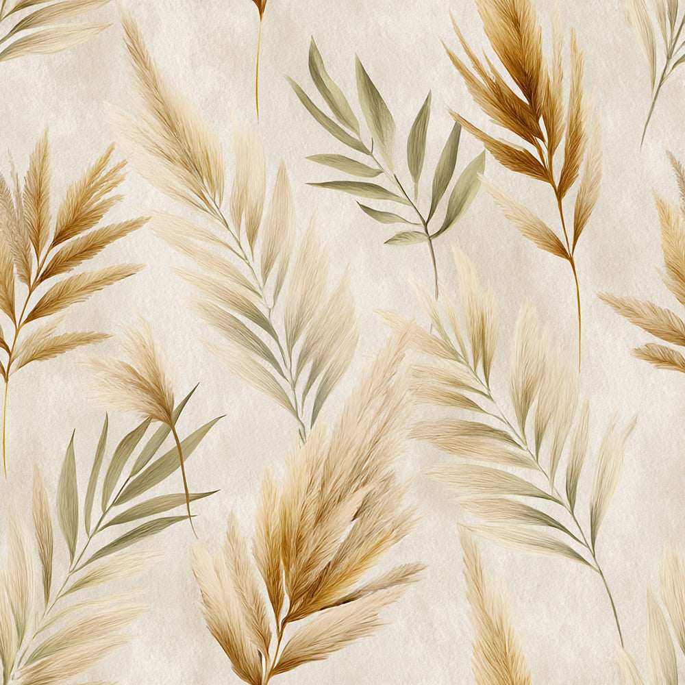 HaokHome Hand-Drawn Pampas Grass and Leaves Wallpaper – Soft Beige and Greenery Design for Living Room & Bedroom