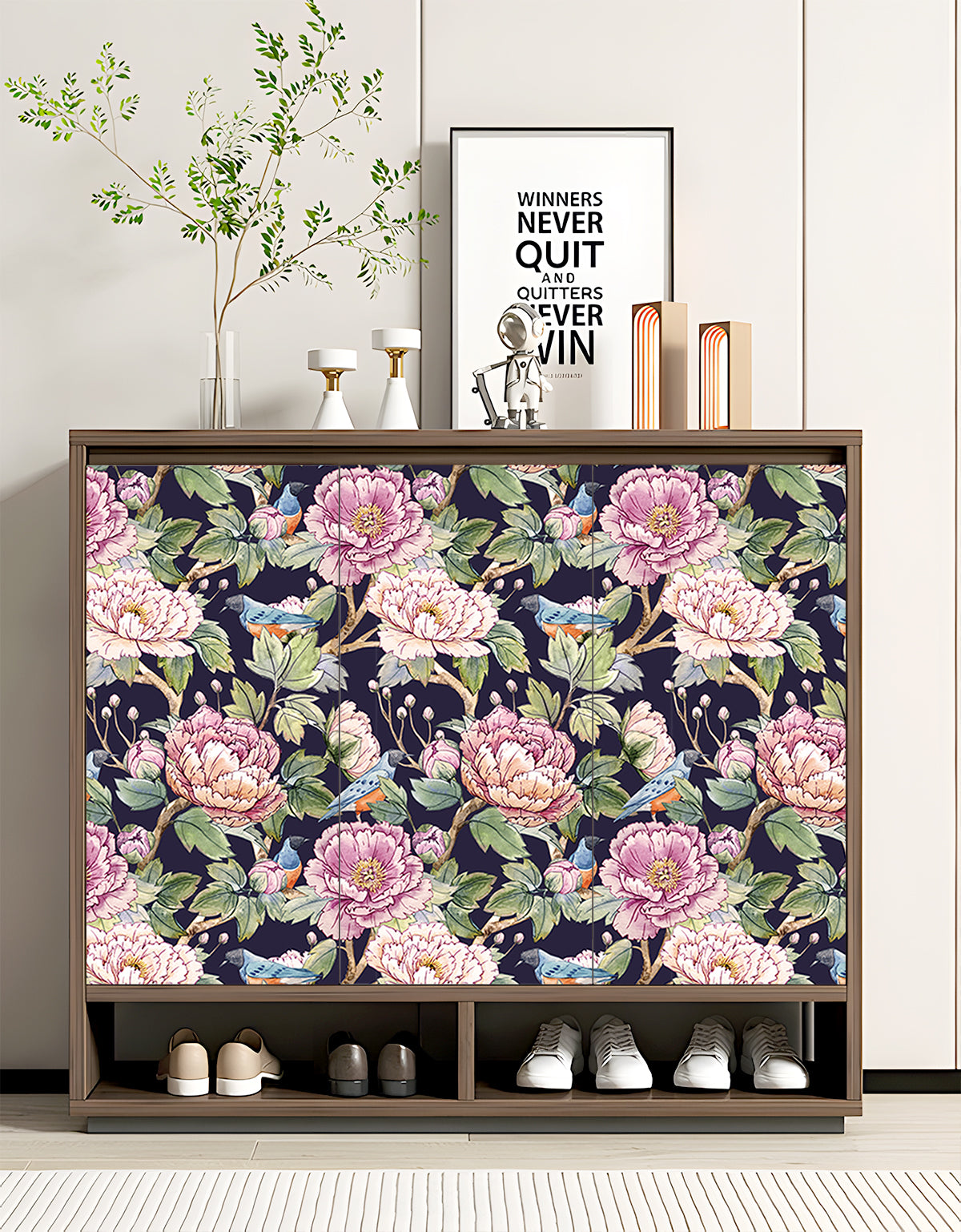 HaokHome Wallpaper Peel and Stick Floral Peony Birds Watercolor Wall Decor Removable Mural