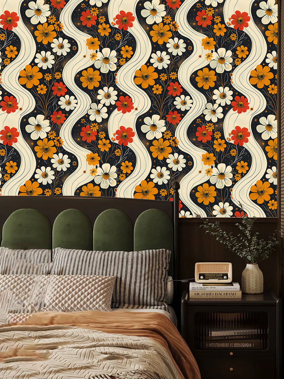 HaokHome Retro Daisy Swirl Wallpaper Bold Floral Design with Vintage Vibes