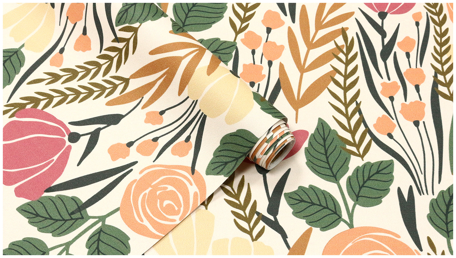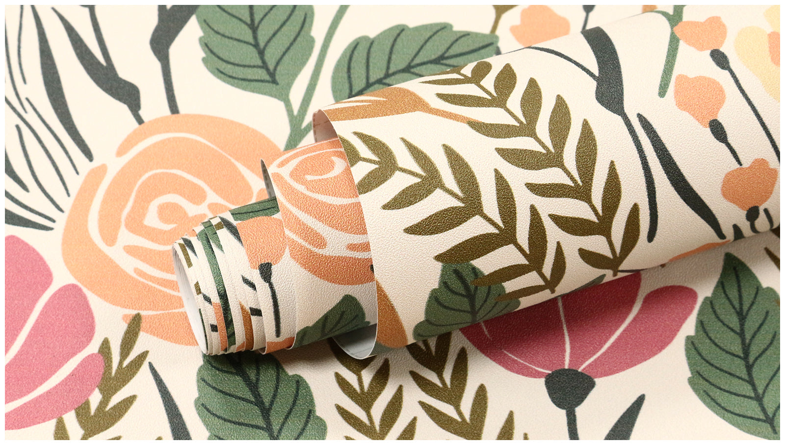 HaokHome Peel and Stick Wallpaper Floral Removable Stick on Contact Paper for Bathroom Beige/Fushia/Green