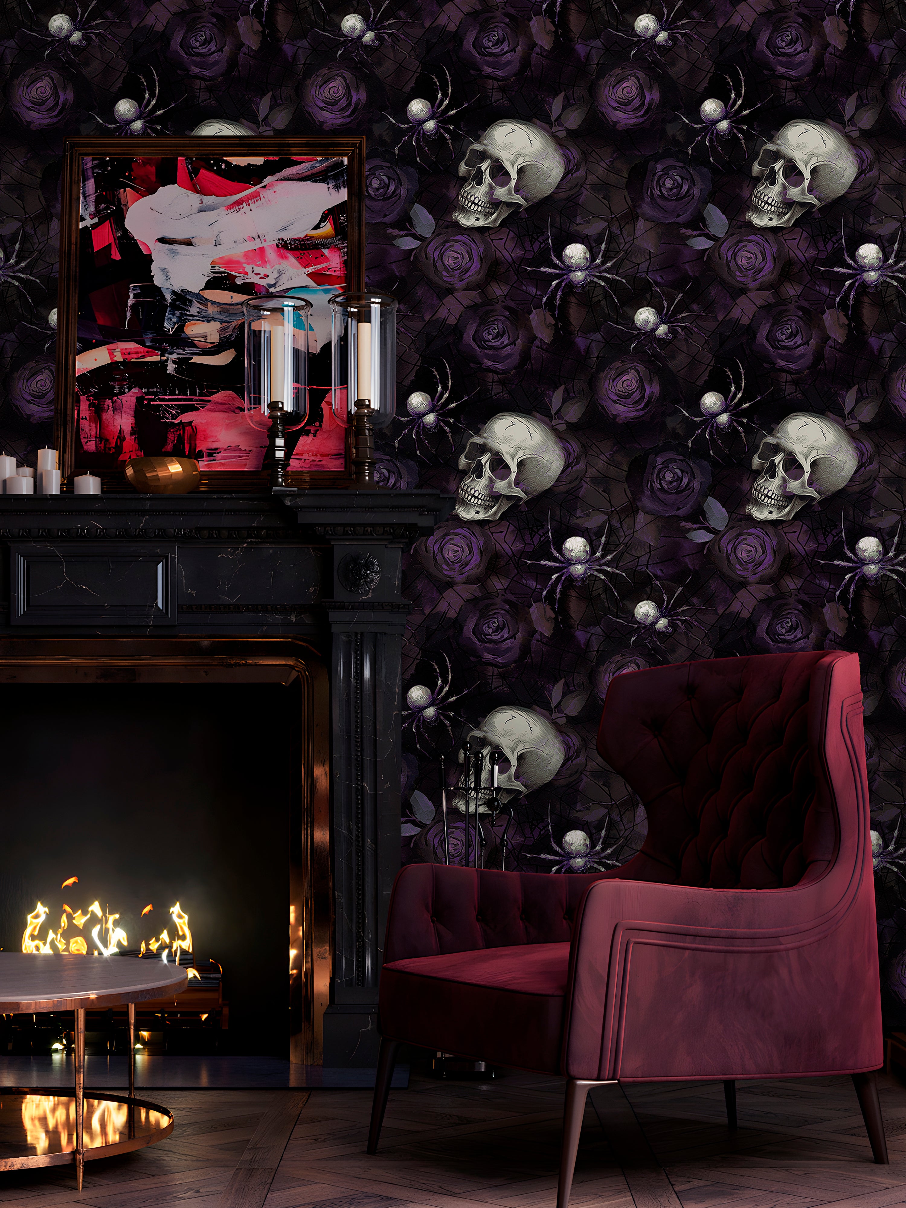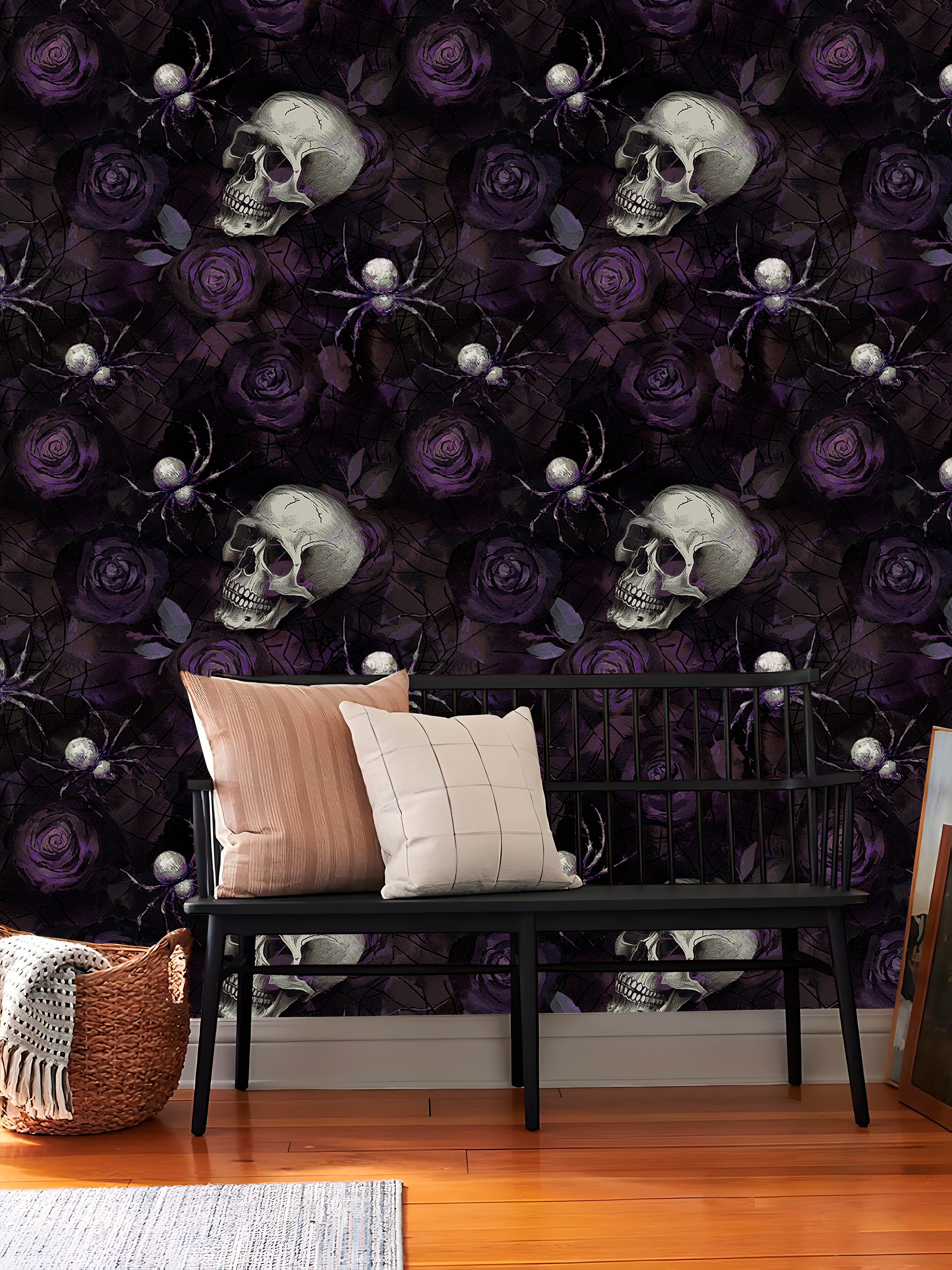 HaokHome Spider and Rose Watercolor Wallpaper Elegant Purple Spiders and Roses on Soft Web Background